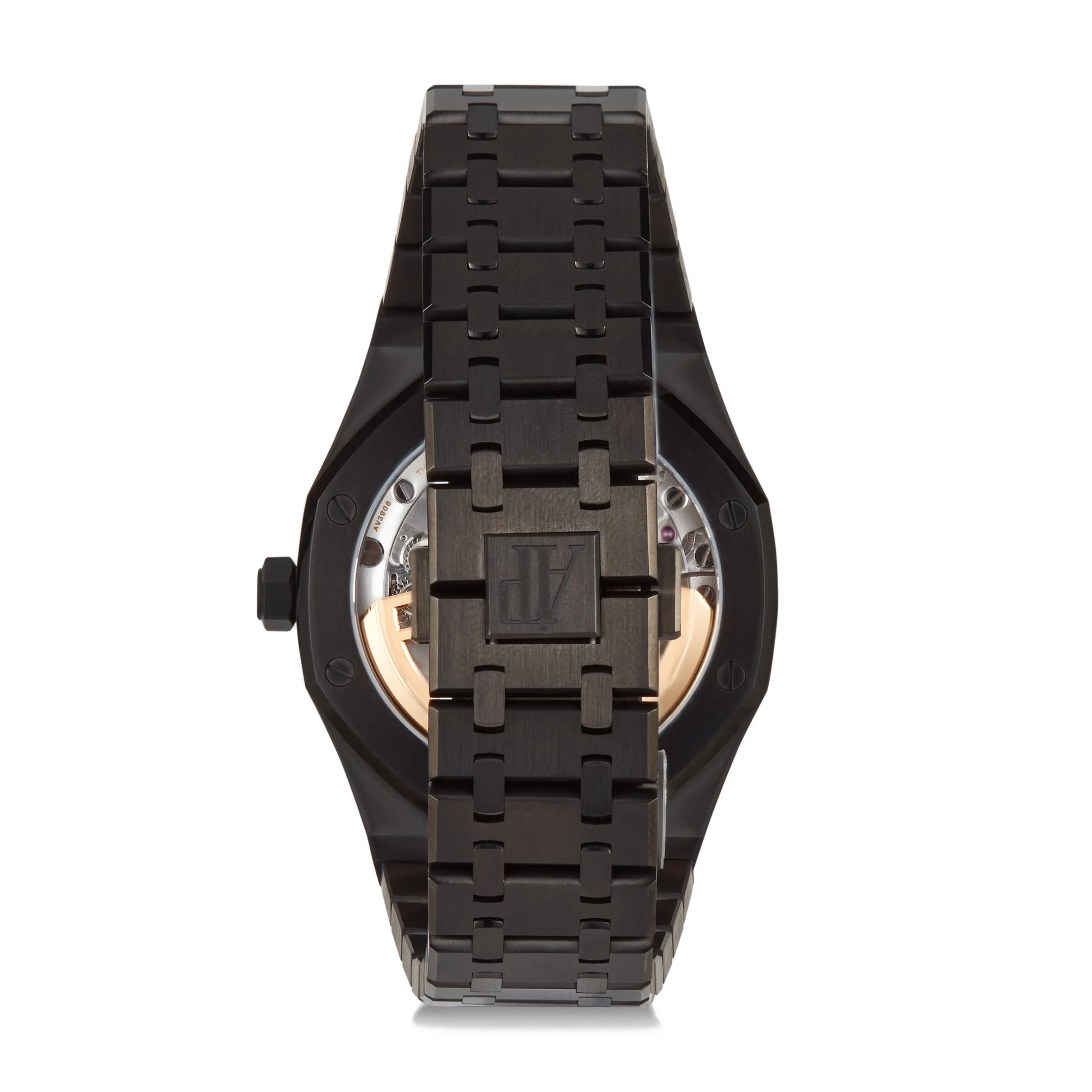 As part of the Blakt range, this customised Audemars Piguet Royal Oak has a custom Blackout DLC, with black dial