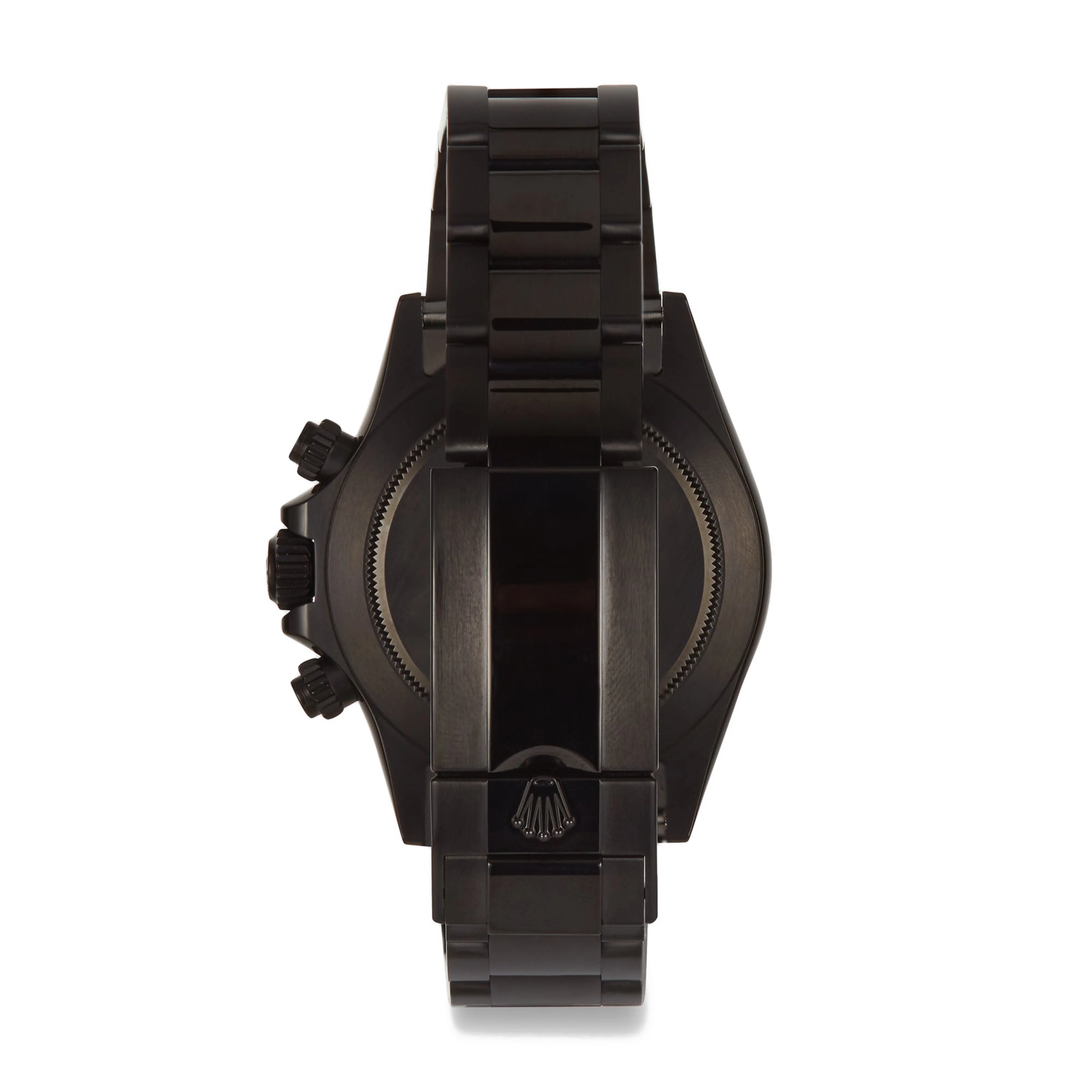 As part of the Blakt range, this customised Rolex Daytona has a custom Blackout DLC, with black dial.